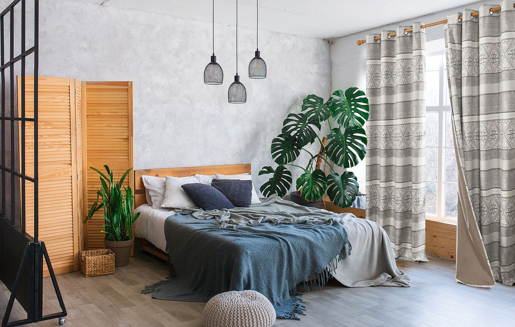 If you have a light and plain bedroom, consider adding a pop of personality with bold pattern curtains. These curtains can come in various patterns, such as geometric, floral, or abstract designs. By introducing a bold way, you can create an energy in the room that adds visual interest, creating a focal point for the space. Adding a bold pattern also gives your bedroom a touch of modernity, making it feel fresh and up-to-date. When selecting bold pattern curtains, consider choosing a color scheme that complements the room's overall color scheme. This will help the curtains blend seamlessly into the space's overall aesthetic while still adding that pop of personality you are looking for.