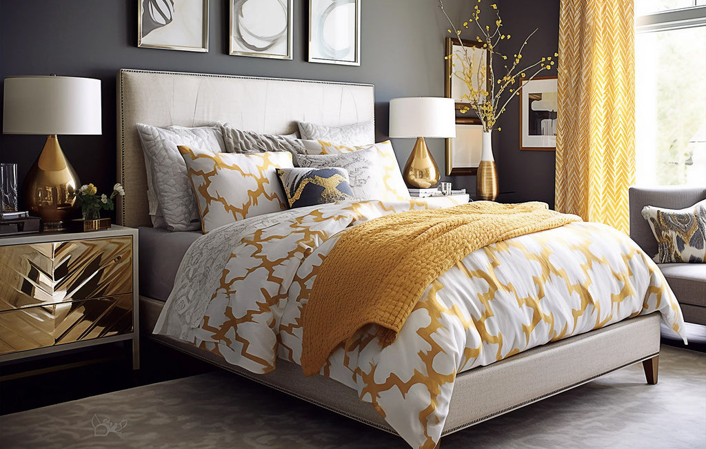 Add a contemporary touch to your modern-themed bedroom by using unexpected fabrics like metallic or geometric patterns.