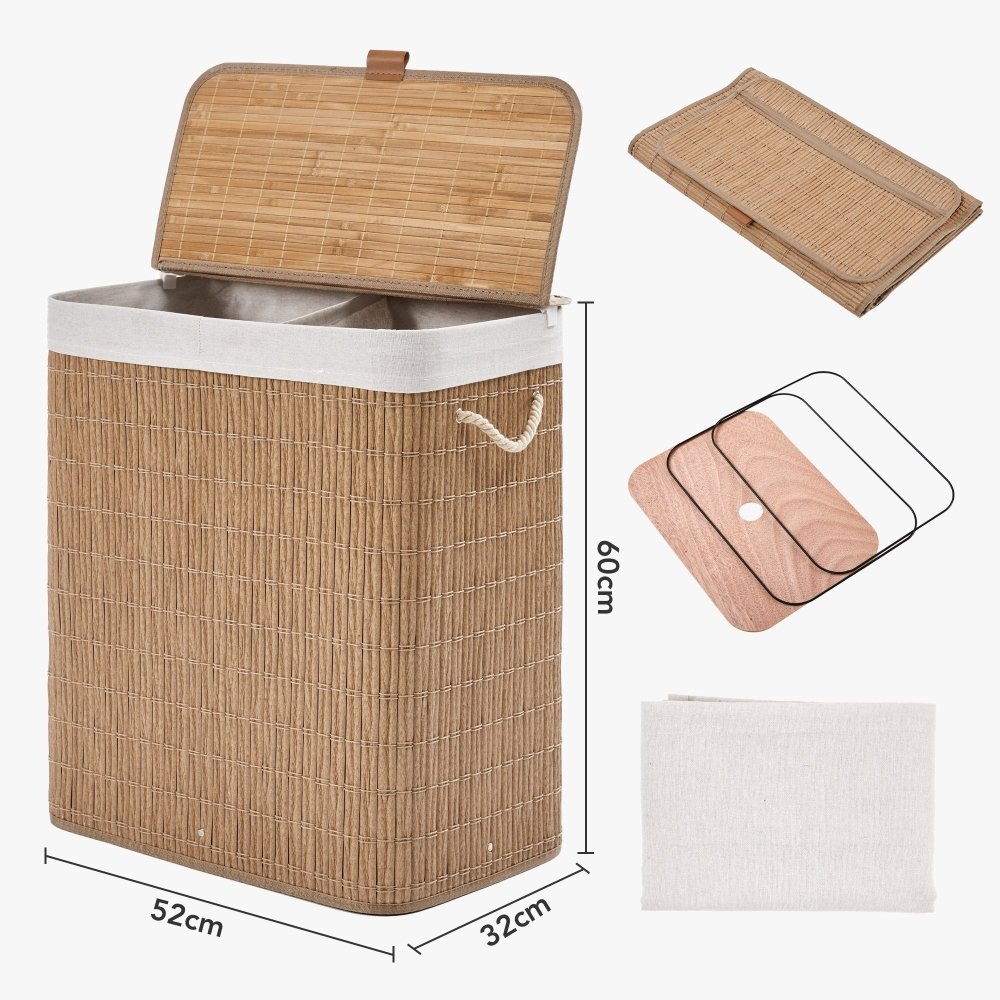 Available in two sizes — 70L single compartment and 100L double compartments — it offers smart, stylish storage for laundry, towels, toys, and more.