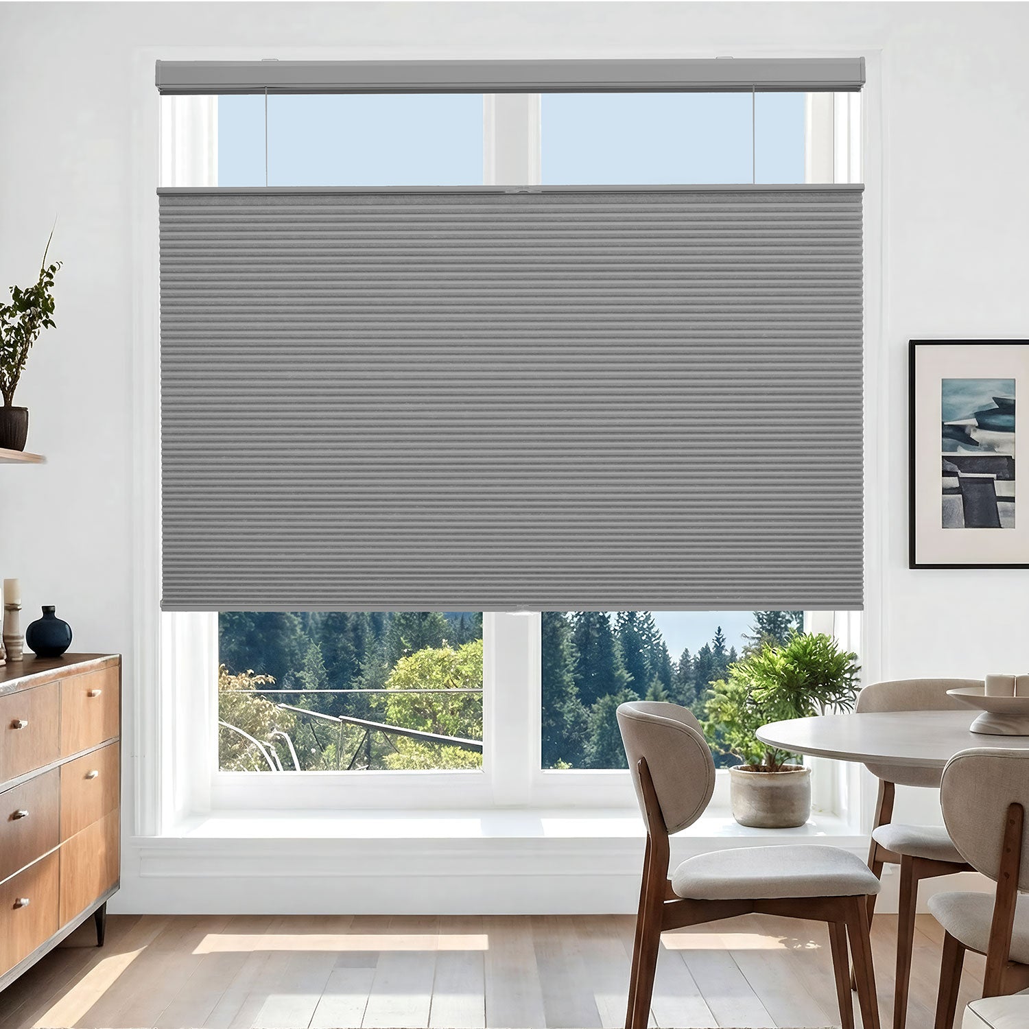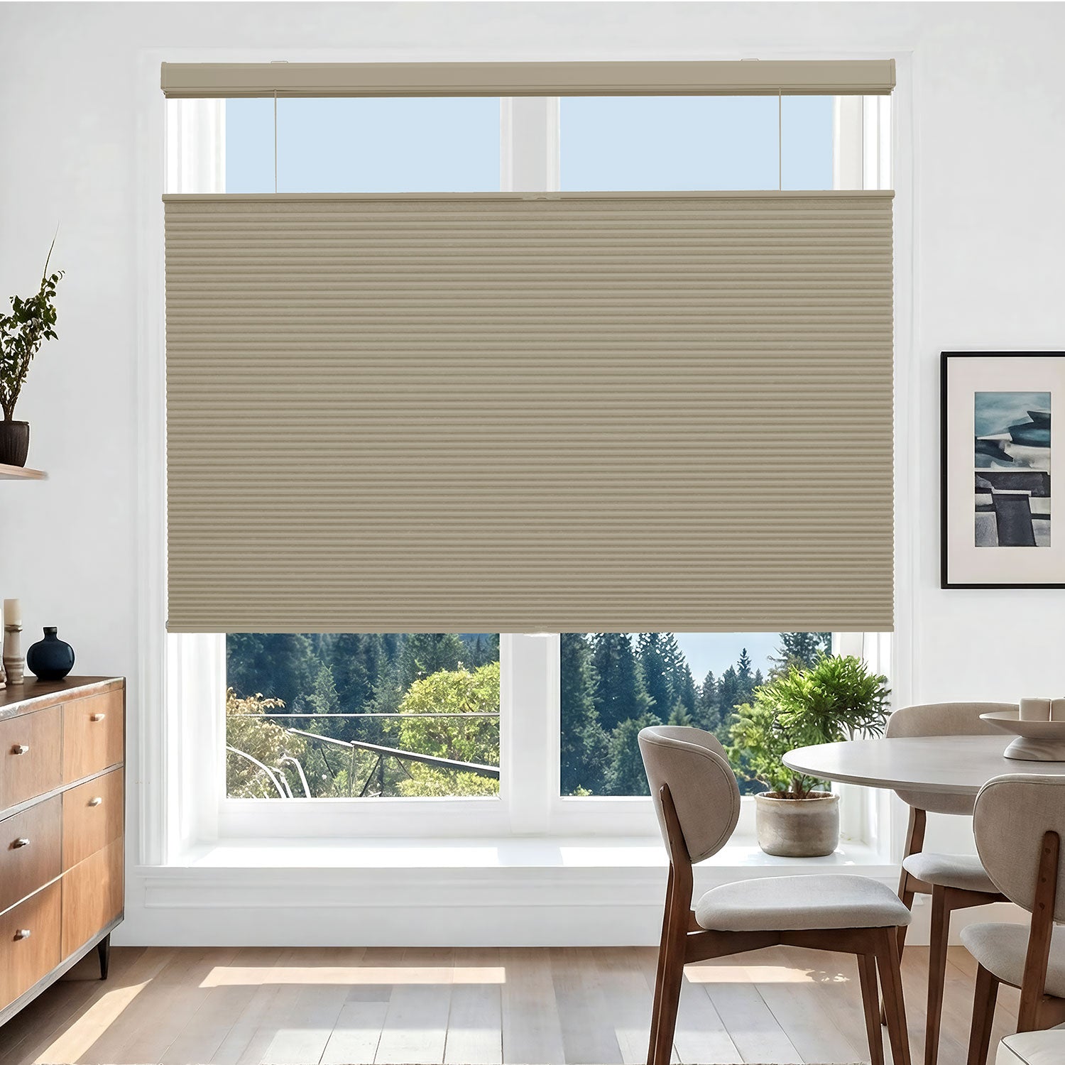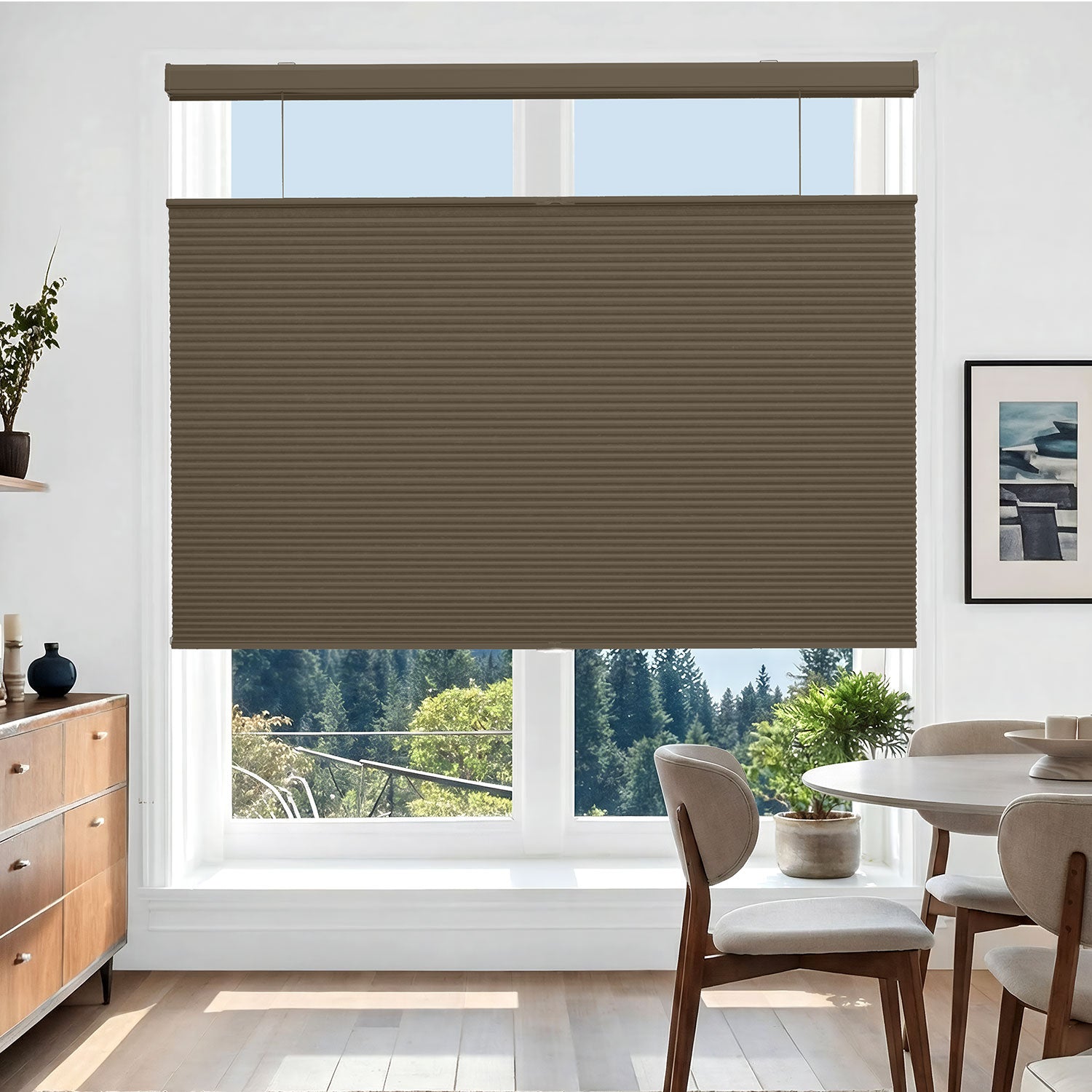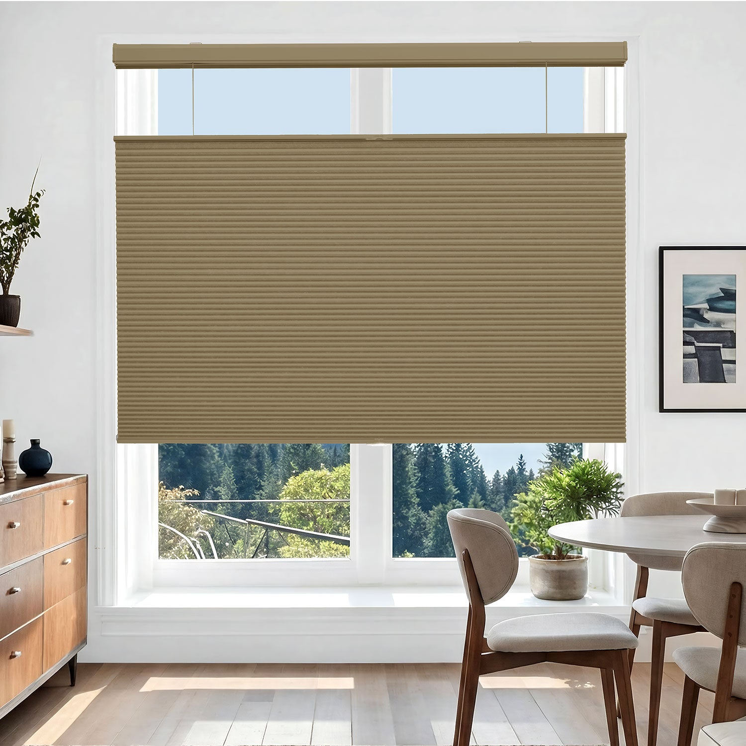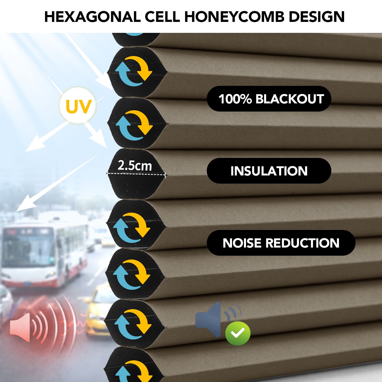Refresh your windows with the soft elegance of Deconovo’s Cordless Top-Down/Bottom-Up Blackout Honeycomb Shades. Thoughtfully designed with a faux honeycomb hexagonal structure, these shades gently trap air within their cells to provide thermal insulation, sound absorption, and softly diffused natural light. The innovative top-down/bottom-up design allows you to welcome daylight from above while maintaining privacy below—creating a comfortable, balanced, and energy-efficient home environment.