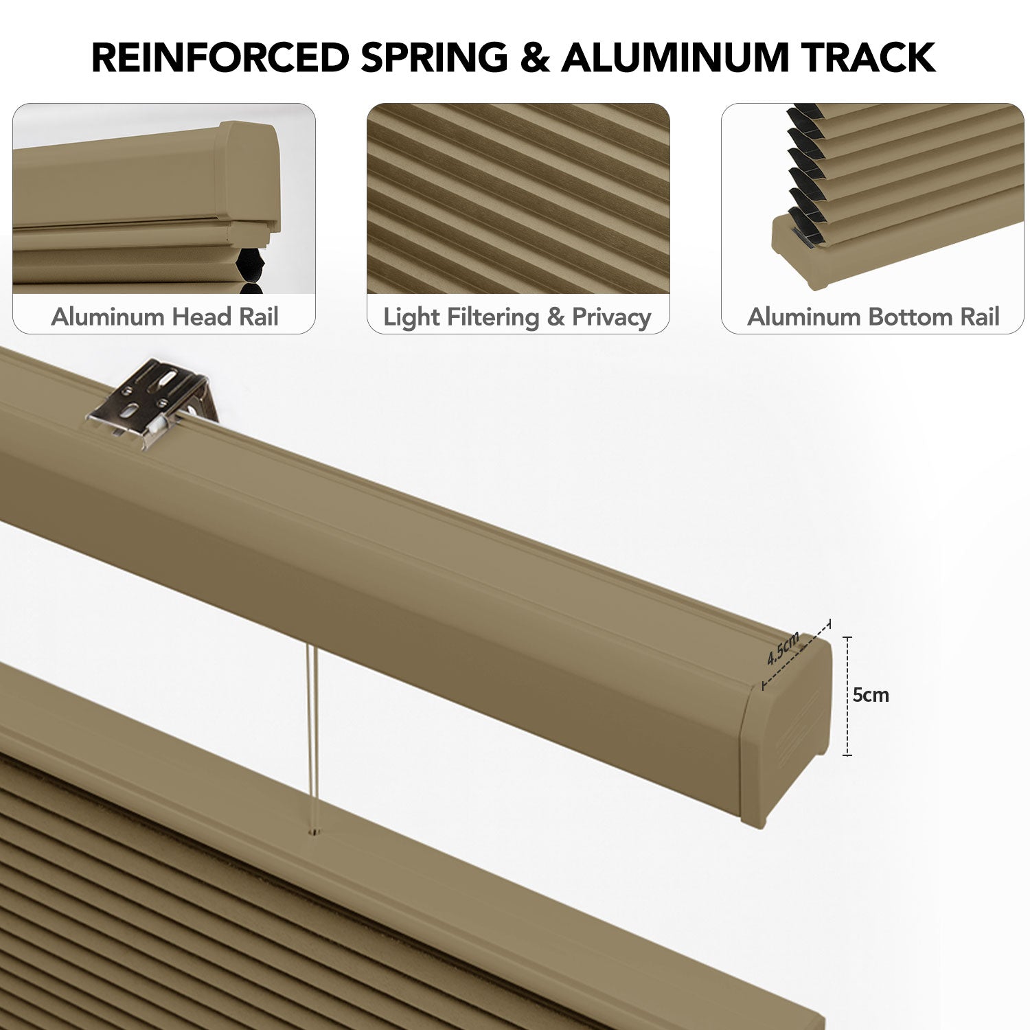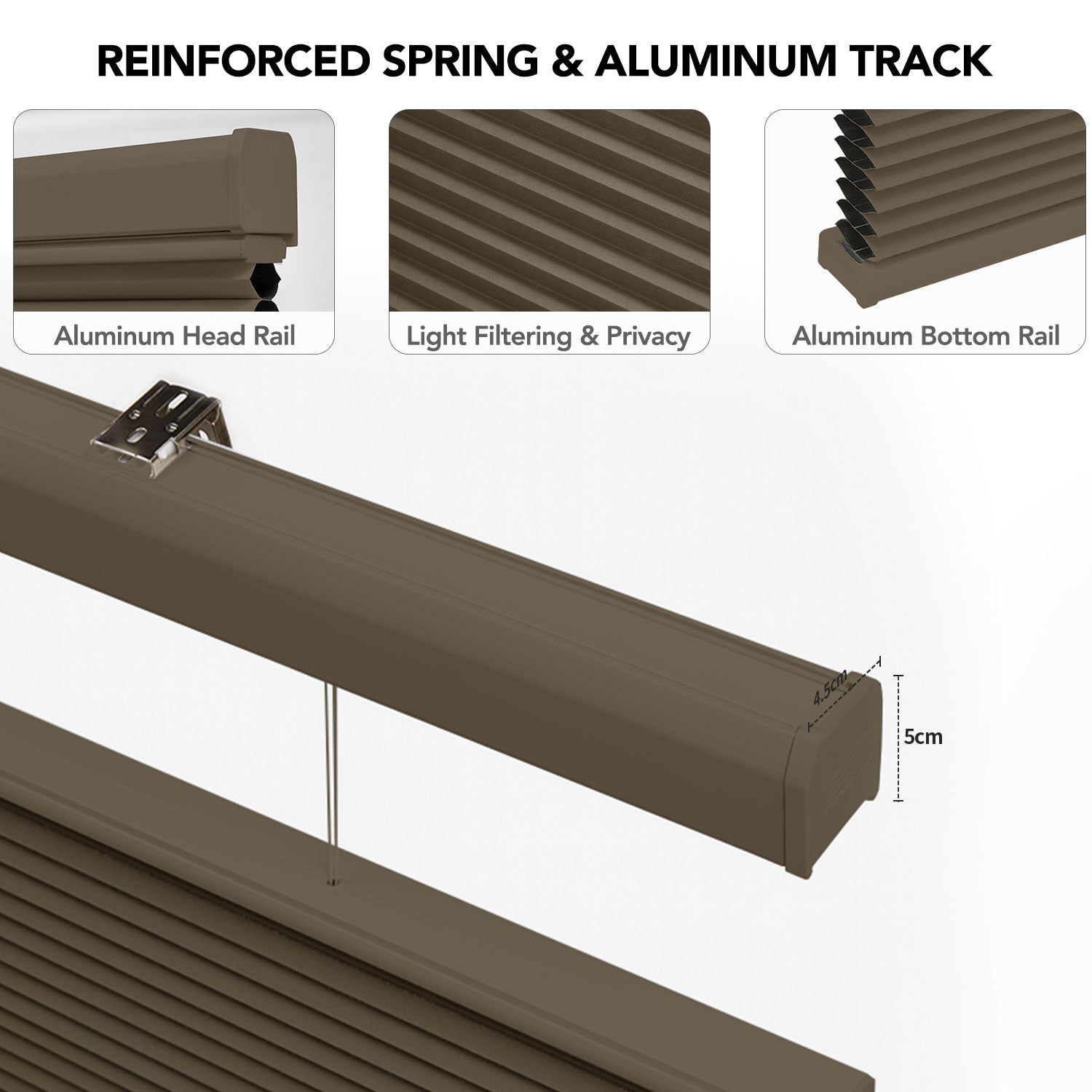 - Color-matched aluminum headrail and bottom rail for a sleek, unified finish