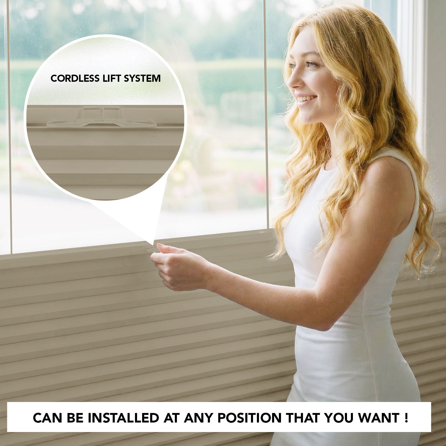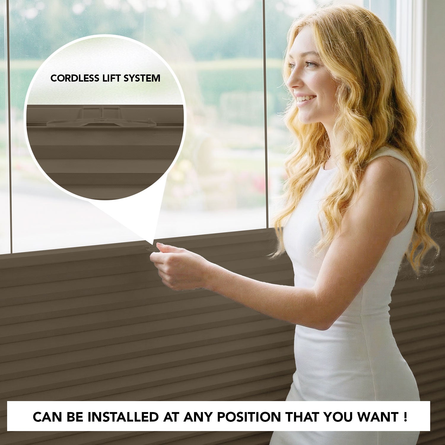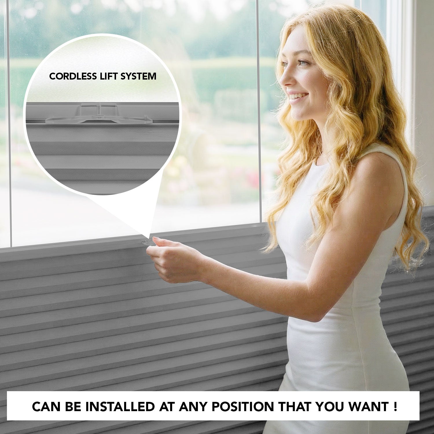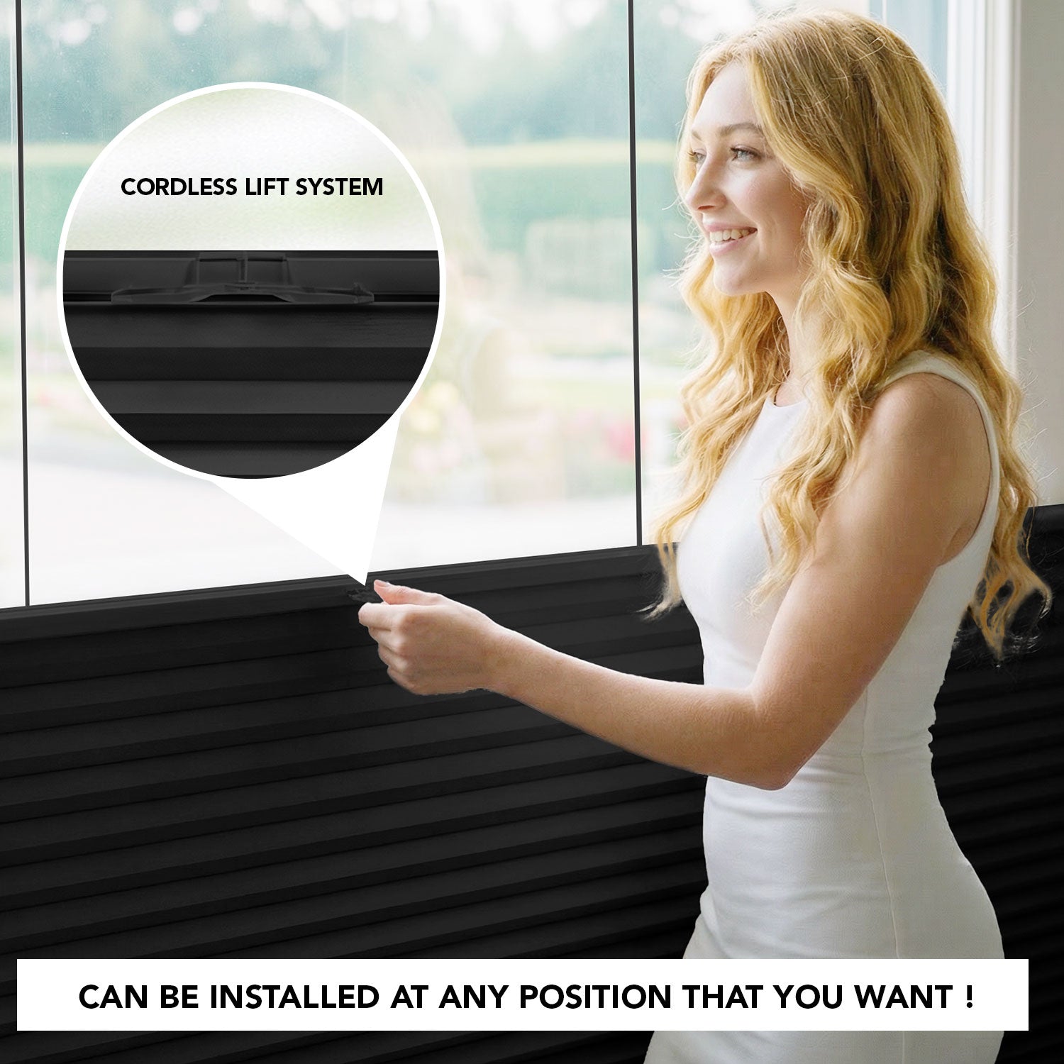 - Top-down/bottom-up design with guiding cords for added stability