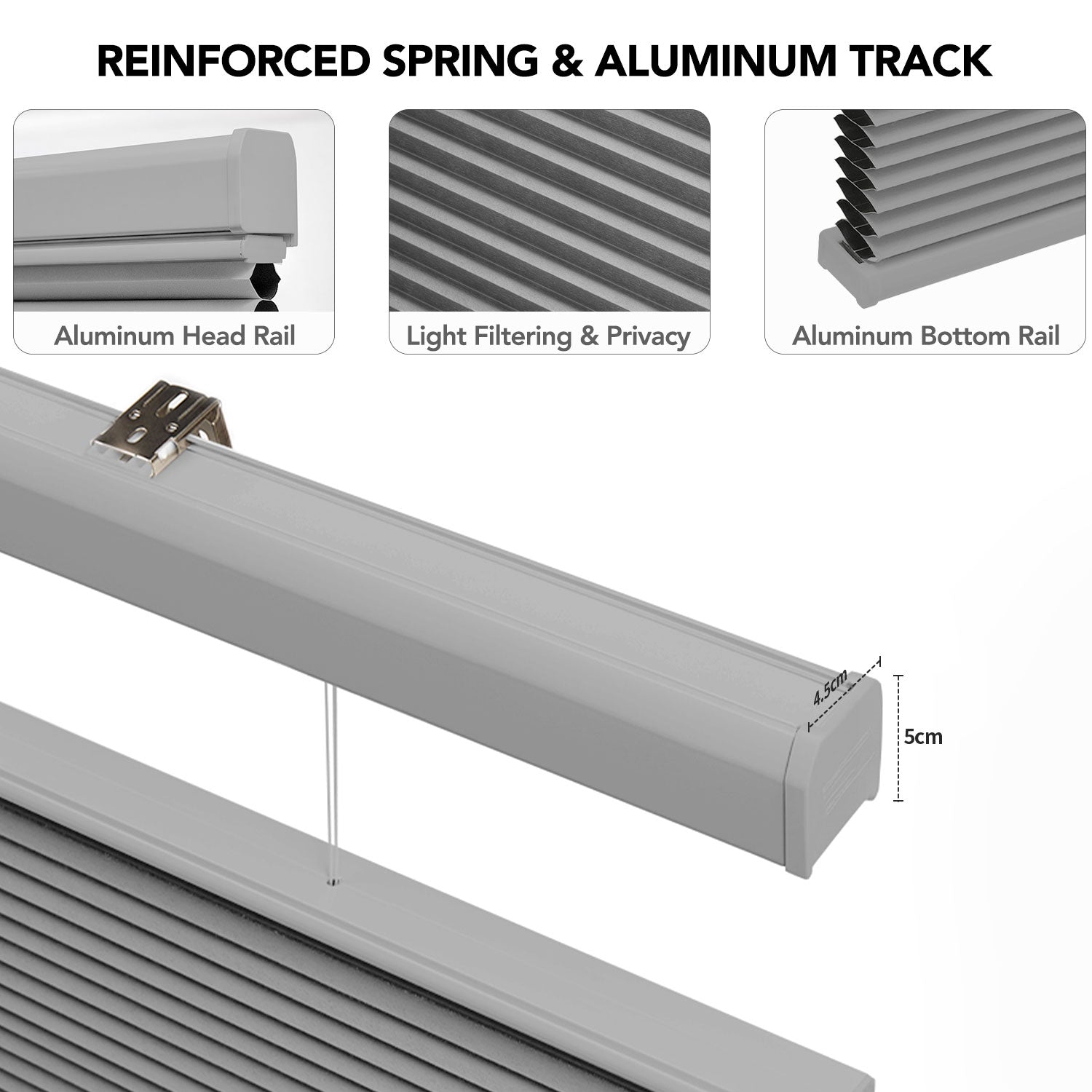 - Easy no-drill installation with upgraded anti-slip headrail