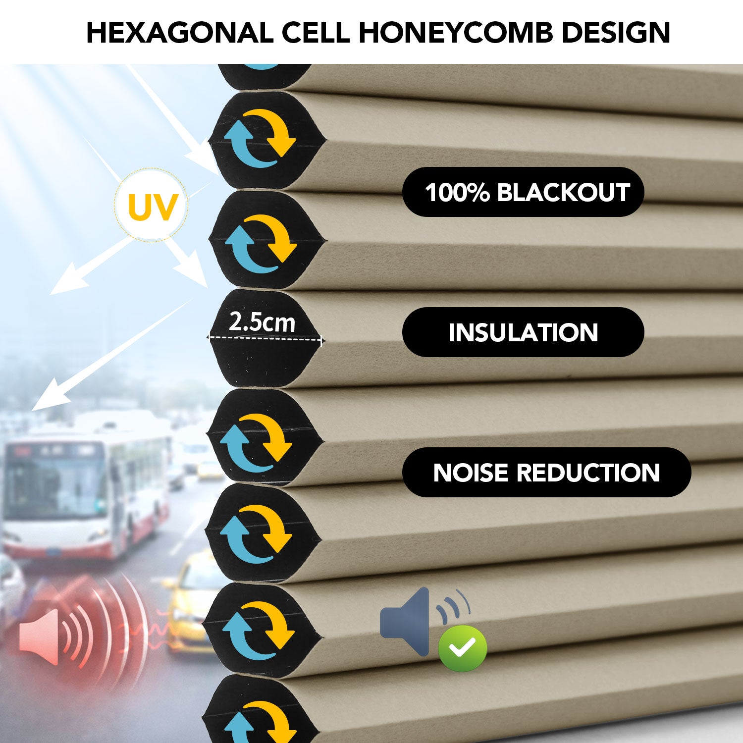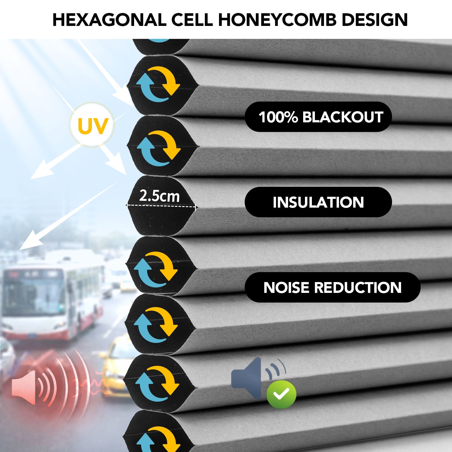 - Faux honeycomb hexagonal fabric for insulation and noise reduction