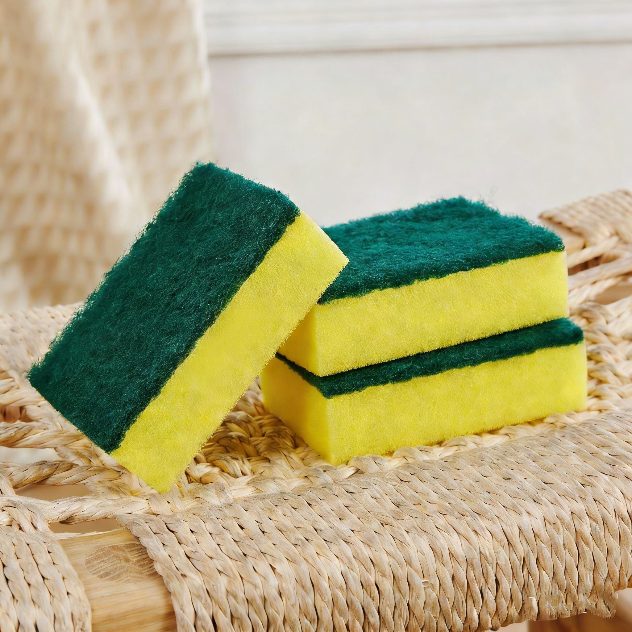 Multi-purpose scouring sponge designed for everyday household cleaning.
